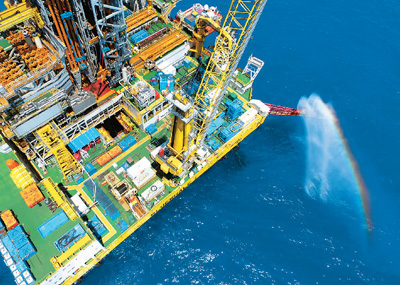 圖為南海神狐海域正在從水深1266米海底以下203-277米試采“可燃冰”的作業(yè)平臺?! 」′h攝(人民視覺)