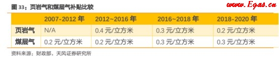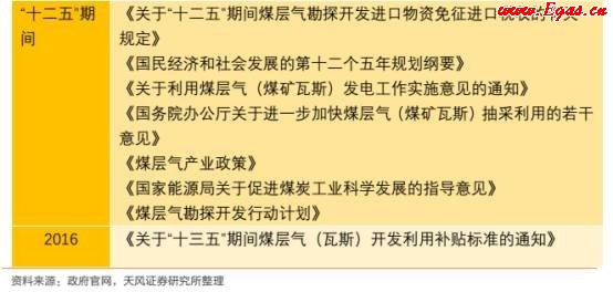 十三五規(guī)劃對(duì)煤層氣的中央財(cái)政補(bǔ)貼標(biāo)準(zhǔn)由0.2元/立方米提高到0.3元/立方米,十三五規(guī)劃對(duì)頁(yè)巖氣的補(bǔ)貼政策為:前三年0.3元/立方米,后兩年降至0.2元/立方米,并且山西、陜西、河南、四川等煤層氣大省均對(duì)煤層氣開發(fā)實(shí)施省內(nèi)補(bǔ)貼,山西、陜西、河南抽采利用補(bǔ)貼為0.1元/立方米,貴州抽采補(bǔ)貼0.15元/立方米,利用補(bǔ)貼0.2元/立方米,可見十三五期間對(duì)煤層氣的補(bǔ)貼力度將大幅高于頁(yè)巖氣。