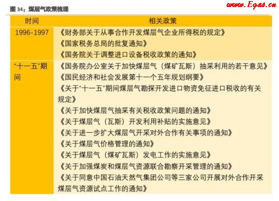 "十二五"期間是煤層氣政策的密集出臺(tái)期。2012年1月國(guó)家能源局發(fā)布了《煤層氣(煤礦瓦斯)開發(fā)利用"十二五"規(guī)劃》。2013年3月,國(guó)家能源局制定印發(fā)《煤層氣產(chǎn)業(yè)政策》,提出把煤層氣產(chǎn)業(yè)發(fā)展成為重要的新興能源產(chǎn)業(yè)。2013年9月,國(guó)務(wù)院發(fā)布國(guó)務(wù)院辦公廳關(guān)于進(jìn)一步加快煤層氣(煤礦瓦斯)抽采利用的意見》。2015年2月,國(guó)家能源局公布了《煤層氣勘探開發(fā)行動(dòng)計(jì)劃》。《計(jì)劃》提出,到2020年,我國(guó)將新增煤層氣探明地質(zhì)儲(chǔ)量1萬(wàn)億立方米;煤層氣(煤礦瓦斯)抽采量力爭(zhēng)達(dá)到400億立方米,其中地面開發(fā)200億立方米,基本全部利用,煤礦瓦斯抽采200億立方米,利用率60%以上;建成3-4個(gè)煤層氣產(chǎn)業(yè)化基地,重點(diǎn)煤礦區(qū)基本形成煤層氣與煤礦瓦斯共采格局。