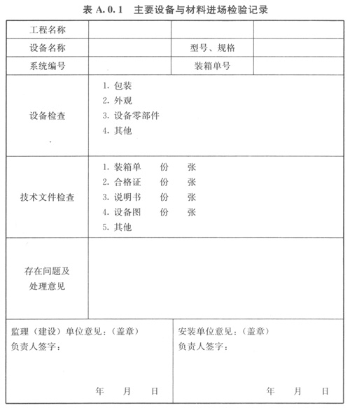 A01主要設(shè)備與材料進(jìn)場(chǎng)檢驗(yàn)記錄可按表A01的格式記錄。