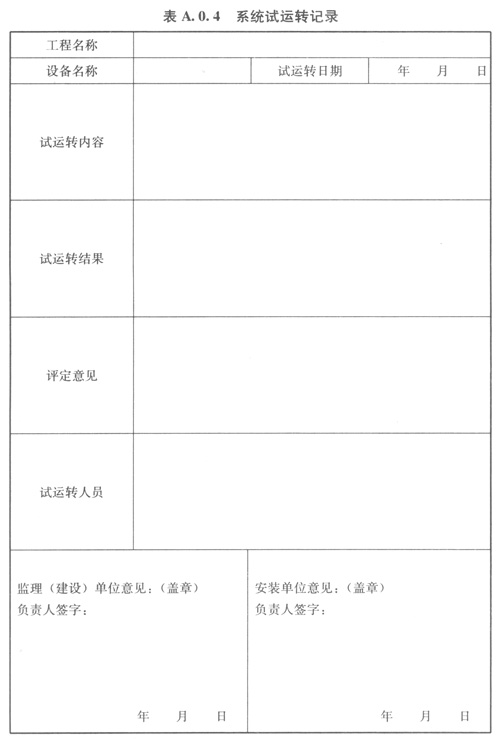 A04系統(tǒng)試運(yùn)轉(zhuǎn)記錄可按表A04的格式記錄。