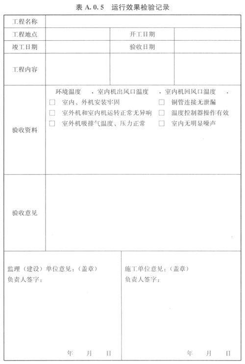 A05運(yùn)行效果檢驗(yàn)記錄可按表A05的格式記錄。