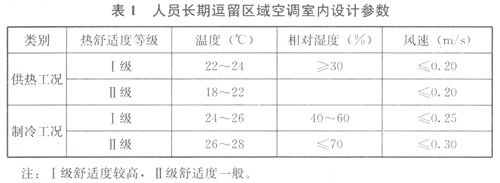1人員長(zhǎng)期逗留區(qū)域空調(diào)室內(nèi)設(shè)計(jì)參數(shù)應(yīng)符合表1的規(guī)定: