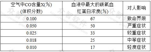 對(duì)應(yīng)于每一個(gè)最大值X,有一個(gè)人體血液中碳氧血紅蛋白濃度值,其關(guān)系詳見表5。