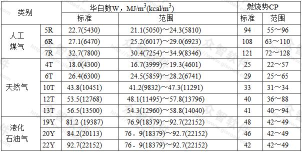 現(xiàn)行的國家標(biāo)準(zhǔn)《城市燃?xì)夥诸悺稧B/T13611,詳見表1(華白數(shù)按燃?xì)飧甙l(fā)熱量計(jì)算)。