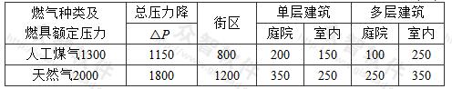 2 把低壓管道的壓力由小于或等于0.005MPa提高到小于0.01MPa。這是考慮為今后提高低壓管道供氣系統(tǒng)的經(jīng)濟(jì)性和為高層建筑低壓管道供氣解決高程差的附加壓頭問(wèn)題提供方便。
