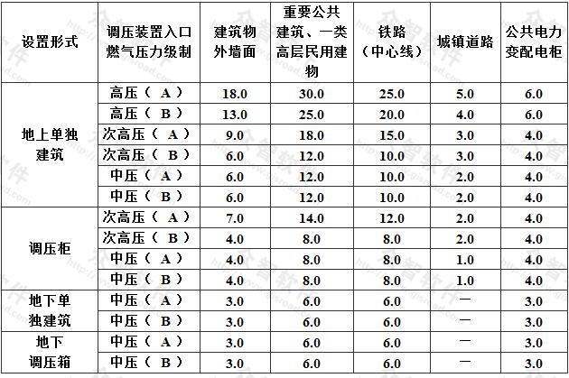 2、3 調(diào)壓器的附屬設(shè)備較多,其中較重要的是閥門,各地對(duì)于調(diào)壓站外設(shè)不設(shè)閥門有所爭(zhēng)議。本條根據(jù)多數(shù)意見(jiàn)并參考國(guó)外規(guī)范,對(duì)高壓和次高壓室外燃?xì)夤艿朗褂?ldquo;必須”用語(yǔ),而對(duì)中壓室外進(jìn)口燃?xì)夤艿朗褂?ldquo;應(yīng)”的用語(yǔ)給予強(qiáng)調(diào)。并對(duì)閥門設(shè)置距離提出要求,以便在出現(xiàn)事故時(shí)能在室外安全操作閥門。