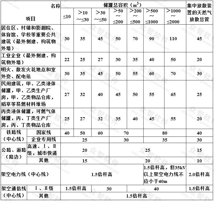 2 與本表以外的其它建、構(gòu)筑物的防火間距應(yīng)按現(xiàn)行的國家標準《建筑設(shè)計防火規(guī)范》GB 50016 執(zhí)行;
