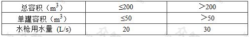 2 總?cè)莘e小于50m3且單罐容積小于等于20m3的液化天然氣儲罐或儲罐區(qū),可單獨設(shè)置固定噴淋裝置或移動水槍,其消防水量應(yīng)按水槍用水量計算。