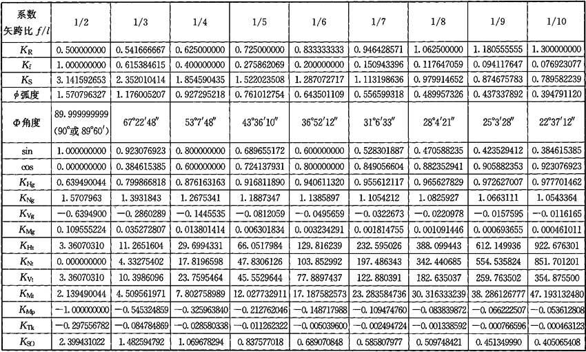 KR、Kf、KS——拱形管道計算系數(shù),應按表C.0.1的規(guī)定取值。