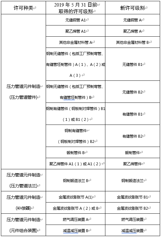 14.進口壓力管道元件許可。根據(jù)前期試點情況,自2022年6月1日起,進口壓力管道管子(A、B)、壓力管道閥門(A1、A2、B)的制造單位應當取得《中華人民共和國特種設備生產(chǎn)許可證》,并按相關安全技術規(guī)范要求通過型式試驗和制造監(jiān)督檢驗(或者進口安全性能監(jiān)督檢驗),過渡期至2024年5月31日。