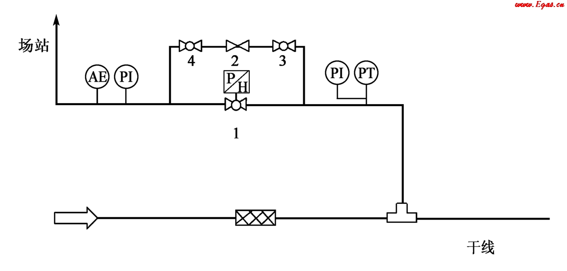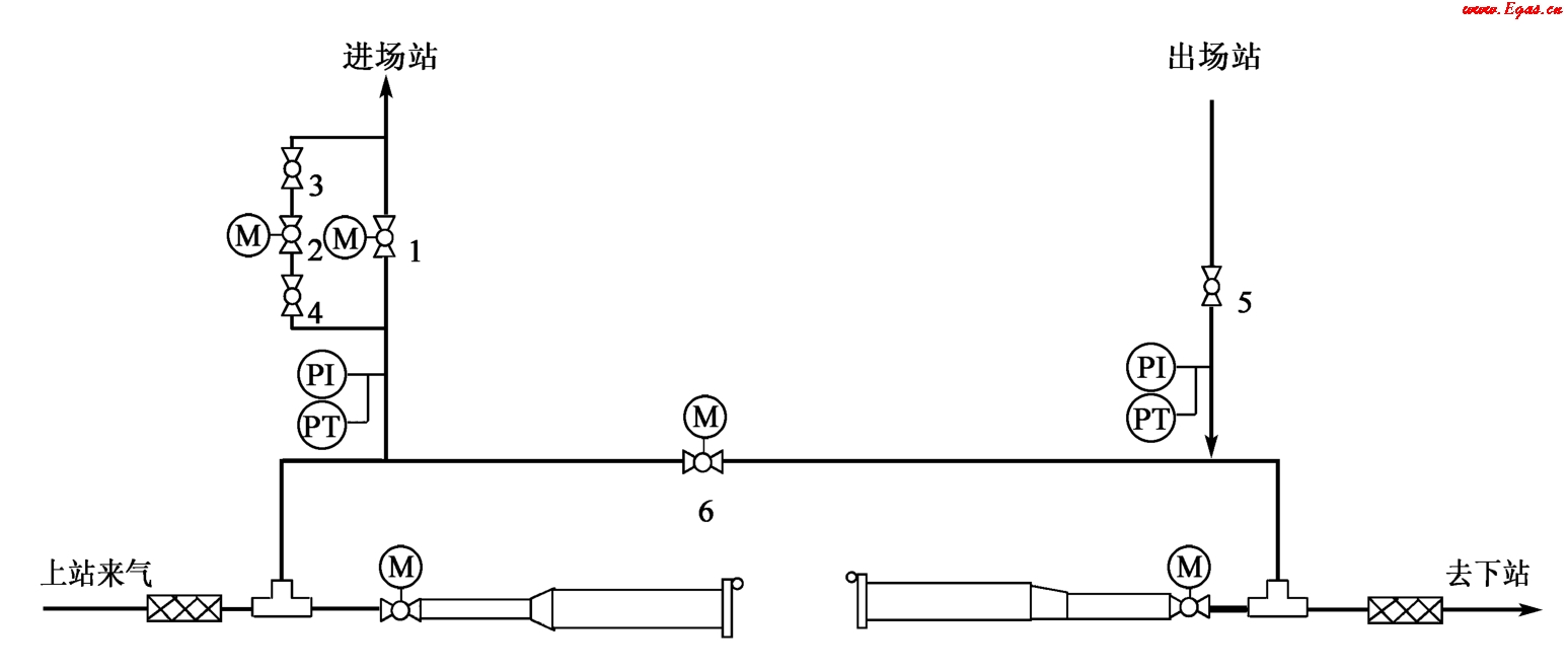 (2)當(dāng)場站內(nèi)不帶壓時,按站場開氣進(jìn)行操作;關(guān)閉閥6。