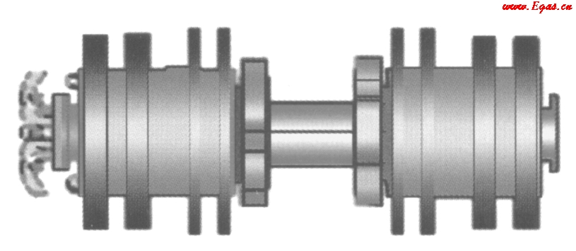 目前,常見的機(jī)械清管器有彈簧支撐型、直型、碟型三種,如圖12-4至圖12-6所示。直型清管器主要用于管道的掃線、上水、排水及沖洗,它具有很強(qiáng)的清污能力、通過能力和交換性,并可以雙向運(yùn)行。蝶型清管器則常用于管道的置換、隔離、掃線,它具有較強(qiáng)的密封能力、通過能力及互換性。