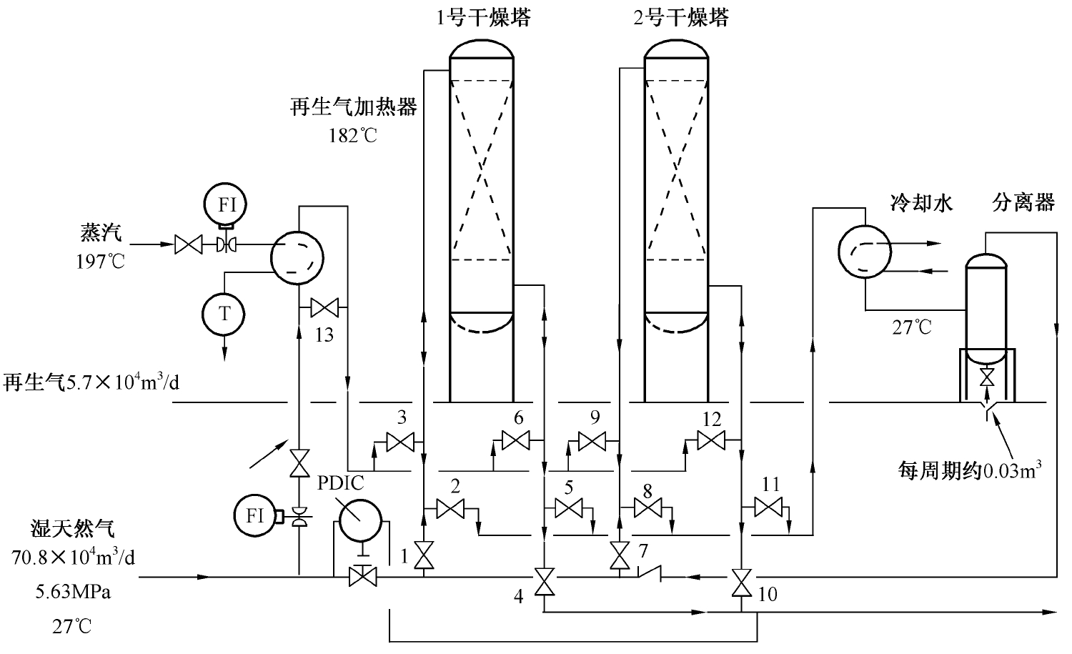 圖2-4 典型的天然氣吸附法脫水水((雙塔流程)
