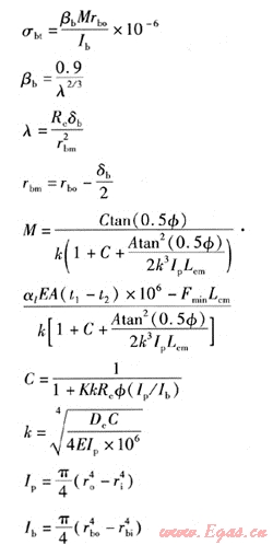 內(nèi)壓產(chǎn)生的環(huán)向應(yīng)力σpt的計(jì)算式為:
