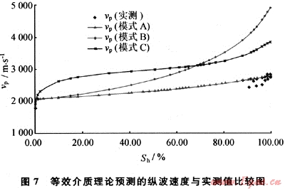 在固結沉積物實驗中,筆者發(fā)現(xiàn)低飽和度的水合物(飽和度小于10%)對聲速影響不明顯的現(xiàn)象,這種現(xiàn)象也被不同學者所捕捉[19~20]。經(jīng)上述分析后認為,水合物在沉積物孔隙流體中形成,對聲速影響不大,可能是造成這一現(xiàn)象的原因。而當水合物膠結沉積物顆粒時,其對聲速的影響則可能成倍增長,如在松散沉積物中,微量的水合物(飽和度1%左右)即可使縱波速度增長200~300m/s。可見,在天然氣水合物的資源評價中,了解水合物的微觀分布同樣具有重要的作用。