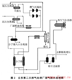 中國(guó)石油吐哈油田公司丘東采油廠(chǎng)開(kāi)采出的天然氣主要輸出到烏魯木齊石化總廠(chǎng)、新疆化肥廠(chǎng)、吐哈油田甲醇廠(chǎng)和新疆廣匯LNG處理廠(chǎng),其輸送干線(xiàn)長(zhǎng)達(dá)300km。因此對(duì)天然氣集中脫水、除雜質(zhì),嚴(yán)格控制產(chǎn)品氣的水露點(diǎn)、H2S和CO2的含量[1],對(duì)保證輸送管路和設(shè)備不被腐蝕、保證下游產(chǎn)品的正常生產(chǎn)、保證液化天然氣用做燃料時(shí)不會(huì)污染環(huán)境都具有重要意義[2~3]。