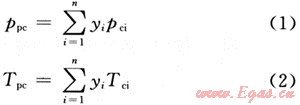 天然氣的臨界參數(shù)采用擬臨界參數(shù),采用Kay’s混合規(guī)則,其定義為: