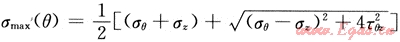 根據(jù)巖石張性破裂準(zhǔn)則,初始斷裂應(yīng)處于z-θ平面內(nèi),由彈性力學(xué)理論,最大拉伸應(yīng)力為[6~7]: