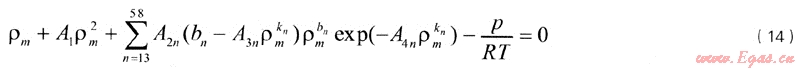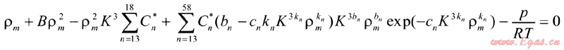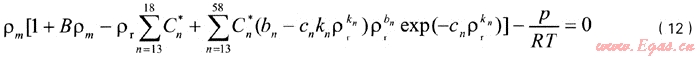 AGA8-92DC方程來(lái)自美國(guó)煤氣協(xié)會(huì)(AGA)。美國(guó)煤氣協(xié)會(huì)在天然氣壓縮因子和超壓縮因子表的基礎(chǔ)上,開展了大量研究,于1992年發(fā)表了以狀態(tài)方程為基礎(chǔ)計(jì)算壓縮因子的AGA No.8報(bào)告及AGA8-92DC方程[2]。