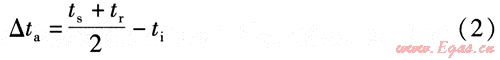 由于對數(shù)平均傳熱溫差計算比較復雜,不適合工程中的簡便計算,因此工程中普遍采用簡便的算術平均傳熱溫差[7],并得到國內(nèi)外對流散熱器測試標準的采用[8、9]。算術平均傳熱溫差△ta的計算式為: