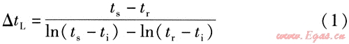 對流散熱器對數(shù)平均傳熱溫差出△tL的計算式為[6]: