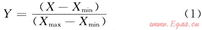 為了使各特征參數(shù)有利于對比,對測井曲線進(jìn)行歸一化[10~12]處理,即
