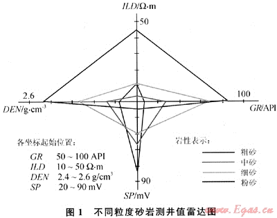 以往的巖性和沉積環(huán)境的研究工作[1~2]都是主要通過巖心觀察或者綜合分析巖屑錄井資料,但取心及巖屑錄井資料都有限。而事實(shí)上,每口井的各種測井資料所提供的豐富的地質(zhì)信息并未得到充分的利用,高效利用測井資料中豐富地質(zhì)信息已成為沉積相的研究工作從定性解釋向定量解釋發(fā)展的方向了。近年來,于民鳳等[3]通過蜘蛛網(wǎng)圖和梯形圖的方法,展示了不同沉積相的特征;唐洪等[4]應(yīng)用直方圖或頻率交會(huì)圖等方法,從測井相等展示了不同沉積相的特征;嚴(yán)科等[5]實(shí)現(xiàn)了沉積微相的人機(jī)交互識別,應(yīng)用Bayes統(tǒng)計(jì)方法,建立測井相-沉積微相線性判別模型,取得了明顯的成效。
