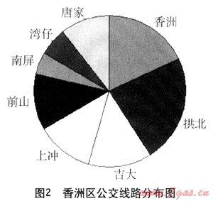珠海市公交線路主要由珠海市公共汽車公司及珠海信禾西部公共汽車有限公司兩家公司經(jīng)營。珠海市公共汽車公司公交線路共有59條,車輛1000多臺(tái)。其中在香洲區(qū)內(nèi)行駛的線路有48條,其余11條線路連接香洲區(qū)與另外兩市轄區(qū);珠海信禾西部公共汽車有限公司共有公交線路45條,車輛350多臺(tái),主要營運(yùn)在斗門區(qū)、金灣區(qū)兩區(qū),其中約40%的線路用于連接香洲區(qū)與另外兩市轄區(qū)。綜合上述數(shù)據(jù)可見,珠海市超過80%的公交線路營運(yùn)或經(jīng)過香洲區(qū)。香洲區(qū)的公交線路主要集中于香洲、拱北、吉大、上沖、前山、灣仔、唐家及南屏,具體分布詳見圖2。