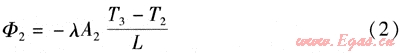 假設不考慮導熱桿的徑向導熱,根據(jù)傳熱學定律,導熱桿的一維導熱量Φ2的計算式為: