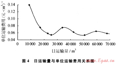 2) 運(yùn)輸距離越遠(yuǎn),日運(yùn)輸量越大,單位運(yùn)輸成本越低。
