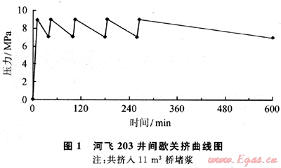 河飛203井間歇關(guān)擠承壓堵漏壓力變化曲線見(jiàn)圖1。