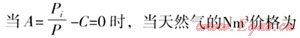 當(dāng)A=0時(shí),天然氣比其它能源種類具有同等經(jīng)濟(jì)性;