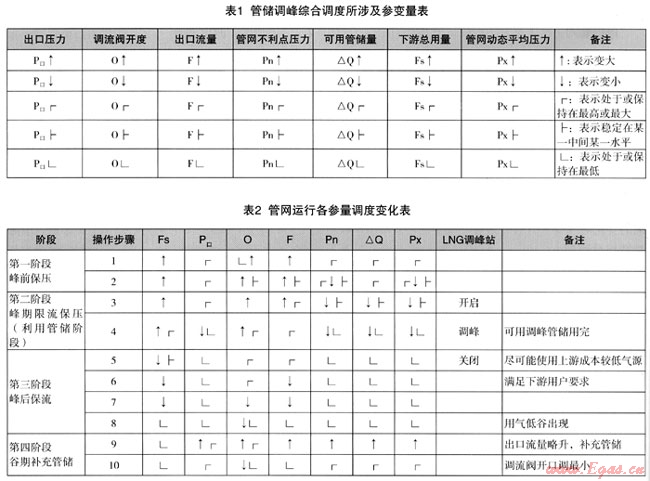 管儲(chǔ)調(diào)峰調(diào)度過(guò)程可參照表1和表2。