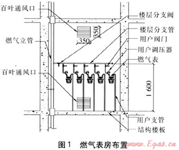 高層住宅樓宇的設(shè)計(jì)中,住宅標(biāo)準(zhǔn)層均設(shè)有諸如水表房、電表房、燃?xì)獗矸?、消防設(shè)備房、垃圾房等樓宇設(shè)備房間,同一樓層住戶的燃?xì)獗砭图邪惭b在該樓層的燃?xì)獗矸績(jī)?nèi)。