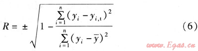 在利用上述模型進(jìn)行預(yù)測(cè)時(shí),需要作相關(guān)系數(shù)檢驗(yàn),以判定預(yù)測(cè)模型的合理性和適用性。相關(guān)系數(shù)是描述兩個(gè)變量之間的線性相關(guān)關(guān)系密切程度的數(shù)量指標(biāo),用R表示。