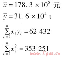 根據(jù)上述一元回歸模型,計(jì)算出相關(guān)參數(shù):