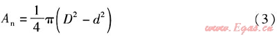 環(huán)形流道截面積An的計(jì)算式為: