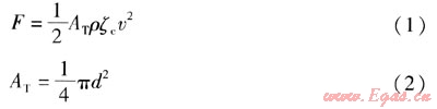 在上述兩項(xiàng)作用力中,第一項(xiàng)力一般比第二項(xiàng)力大很多,靶式流量計(jì)主要是利用第一項(xiàng)力測(cè)量流體的流量。因此,在分析靶式流量計(jì)受力與流體流量之間的關(guān)系時(shí),只考慮第一項(xiàng)力。根據(jù)伯努利方程,流體對(duì)靶片作用力F的計(jì)算式為: