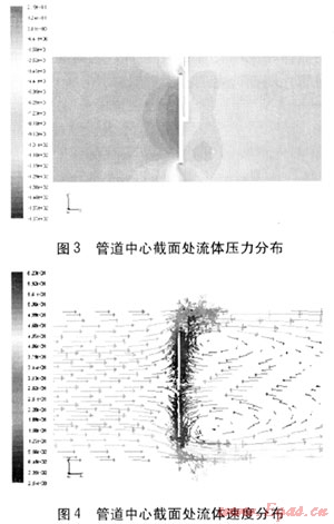 在對(duì)其他兩種形狀靶片進(jìn)行模擬時(shí),管道內(nèi)部流體壓力、速度分布與圓盤(pán)形靶片相似。但由于這兩種形狀的靶片與圓盤(pán)形靶片相比外形變化緩慢,因此采用這兩種形狀靶片時(shí),流體的壓力、速度變化沒(méi)有采用圓盤(pán)形靶片時(shí)快。