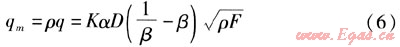 由式(5)可得到流體質(zhì)量流量qm的計(jì)算式為: