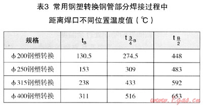 2 鋼塑轉換焊接過程中焊口處溫度確定