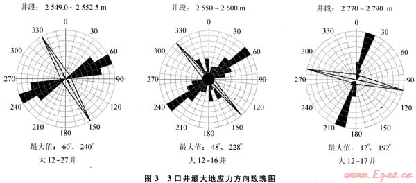 2) 3口井的地應(yīng)力方向為北東-南西向。