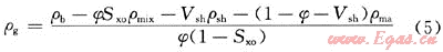 ρb=φ[ρg(1-Sxo)+Sxoρmix]+Vshρsh+(1-Vsh-φ)ρma (4)