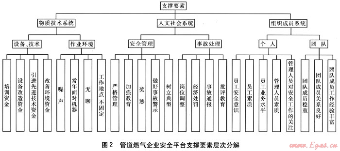 管道燃?xì)馄髽I(yè)的安全平臺(tái)支撐體系的3個(gè)支撐系統(tǒng)由一系列的要素構(gòu)成。