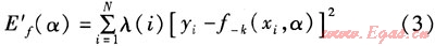 式中E′f(α)——引入調(diào)整權(quán)值后的模型f-k(xi,α)泛化誤差的交叉驗證估計