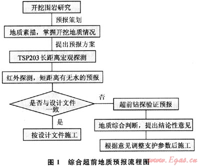 西氣東輸二線隧道工程綜合超前地質(zhì)預(yù)報(bào)系統(tǒng)具體實(shí)施流程見圖1。