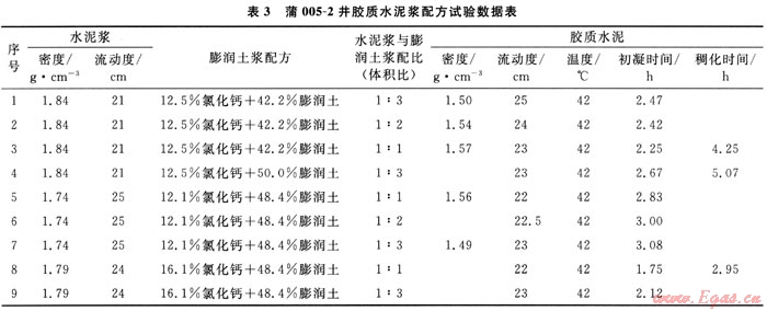 3) 膠質(zhì)水泥漿配方比例:水泥原漿:氯化鈣膨潤土漿=1:1~1:1.5。