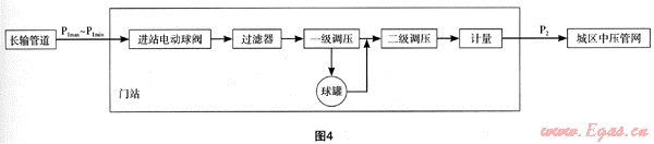 天然氣通過長輸管道輸送,首先進入城市門站,由門站降壓、計量后進入城市燃氣管網(wǎng)。門站是上、下游氣源的聯(lián)接點,設(shè)計應(yīng)考慮多方面的因素。調(diào)壓系統(tǒng)是城市門站設(shè)計中的核心問題,調(diào)壓器也是門站最重要的設(shè)施之一。選擇調(diào)壓器及調(diào)壓系統(tǒng)應(yīng)綜合考慮流量、進出口壓力、燃氣性質(zhì)、調(diào)節(jié)精度等因素。同時要考慮上、下游實際運行工況、城市儲氣方式。