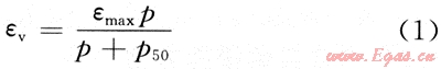 進(jìn)一步實(shí)驗(yàn)表明,吸附應(yīng)變與壓力并非呈線性關(guān)系,而呈一條曲線,低壓時(shí)曲線較陡,高壓時(shí)曲線變得平緩,與吸附等溫線類(lèi)似。將式(1)化成直線型,即: